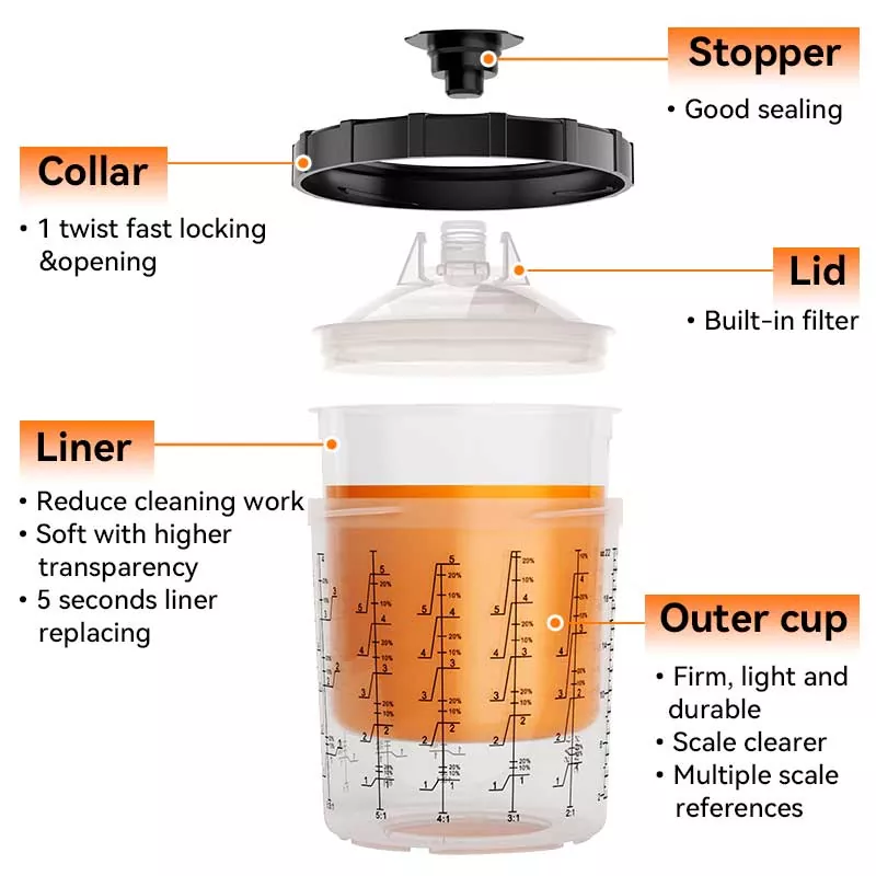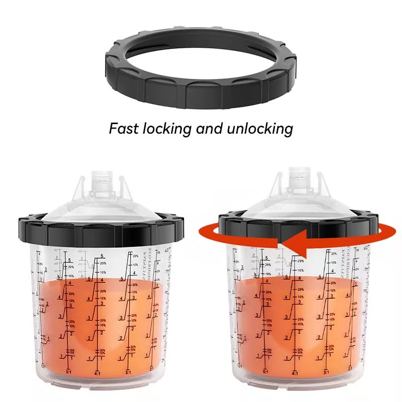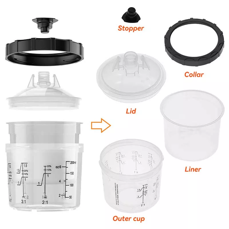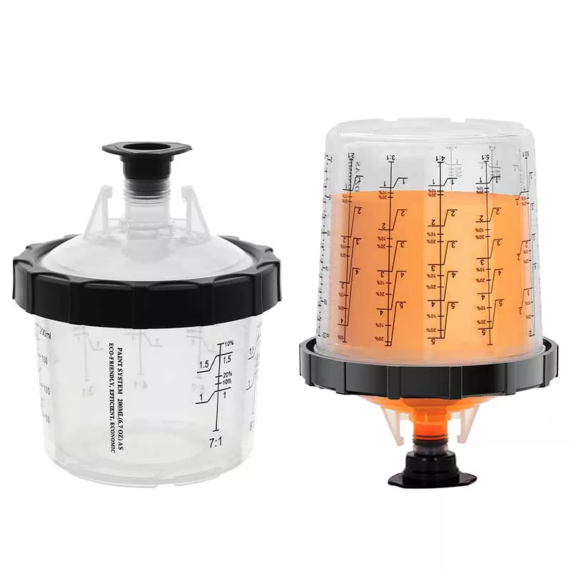 Dit 200 ml wegwerpverfbekersysteem 1.0 vervangt in feite de traditionele beker met zwaartekrachttoevoer, omdat het niet alleen meer verf bespaart, maar ook de efficiëntie van het schilderen verbetert. Met name het prachtige ontwerp van de automatische spiraal naar beneden tijdens het schilderen zorgt ervoor dat de verf volledig wordt benut; Ondertussen voorkomt het ontwerp met snelle vergrendeling en vervanging van de voering het wassen van de beker, waardoor het schilderwerk efficiënt en herhaaldelijk kan worden uitgevoerd. We hebben adapters voor bijna alle merken spuitpistolen op de markt om aan de ervaringsbehoeften van verschillende spuitpistoolliefhebbers te voldoen. De adapter is gemaakt van roestvrij staal, dat bestand is tegen verfcorrosie en zeer duurzaam is. De strakke combinatie van de voering met het deksel zorgt ervoor dat het bekersysteem tijdens het schilderen geen verf lekt en ondersteunt langdurige opslag van ongebruikte verf om verspilling te voorkomen.