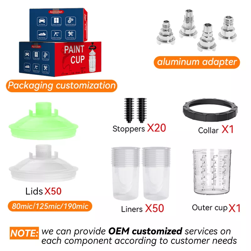 AYSPAT 200ML Speedy Paint System 2.0 is een verbeterde versie van de originele 1.0-serie. Door structurele optimalisatie op basis van de PPS 1.0-serie worden verdere prestatieverbeteringen bereikt. Het AYS3.5 speedy verfsysteem kan worden gebruikt in combinatie met de AYS3.0-serie adapter om verbinding te maken met verschillende soorten spuitpistolen. Als China wegwerpbare spuitpistoolbekerfabriek, produceren wij hoogwaardige spuitverfbeker en ondersteunen OEM en ODM aangepaste productie. Als u een wegwerpbare verfbeker wilt kopen, stuur ons dan een aanvraag en wij zullen u een offerte geven.