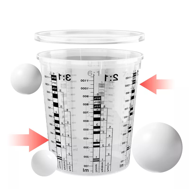5000 ml PP Automotive Paint Mengbeker met deksel is een large-capaciteit verfmengingsgereedschap. Het is uitgerust met een apart deksel voor opslag op korte termijn, dat is verzegeld en geen verf lekt. De beker en het deksel kunnen afzonderlijk worden gekocht; Als fabrikant bieden we goedkope verfmixbekers. Informeer ons gewoon en u krijgt een verfmixcup -offerte.