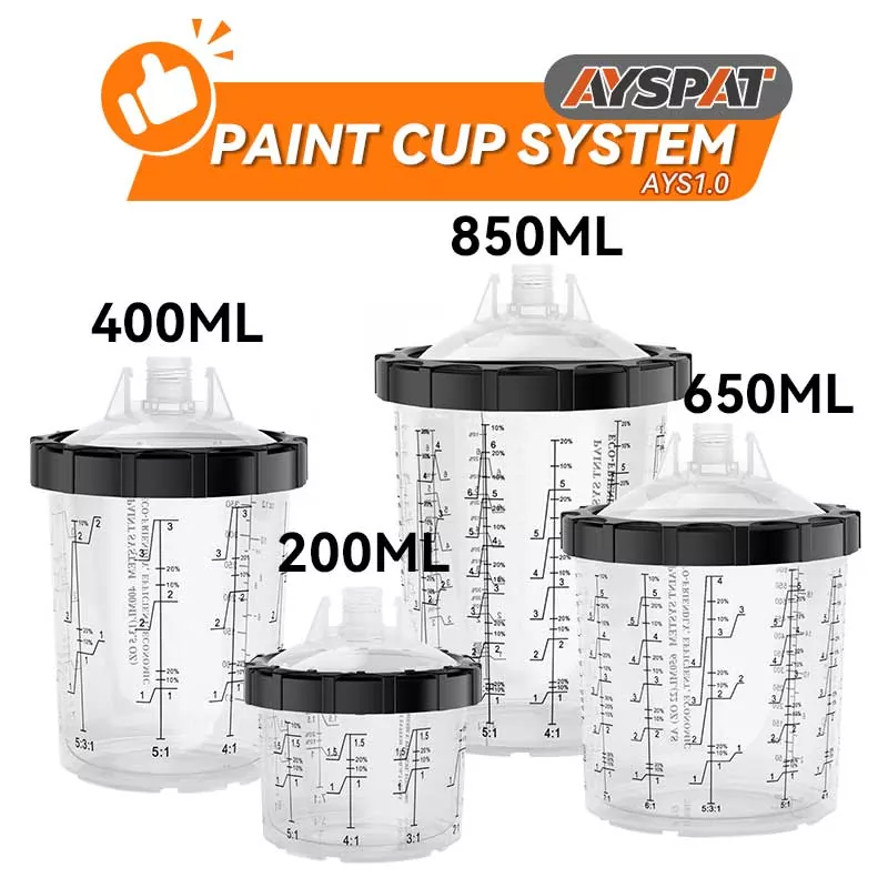 DeAYS1.1 wegwerp verfbekersysteemverbetert de ervaring van handmatig spuiten, waardoor het mengen en spuiten een waar plezier wordt en het reinigen van verf eenvoudiger wordt
