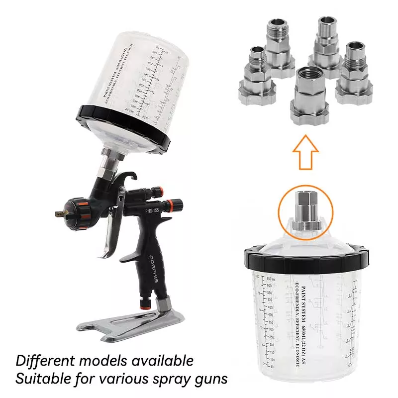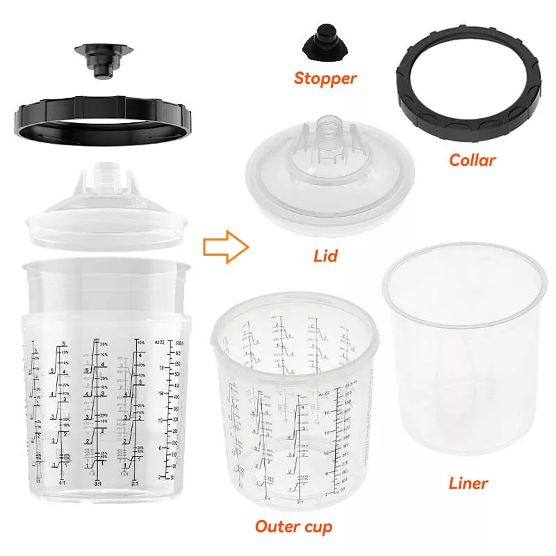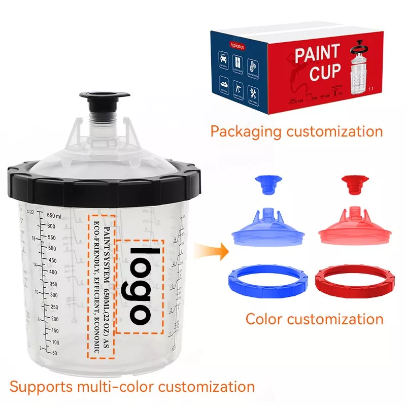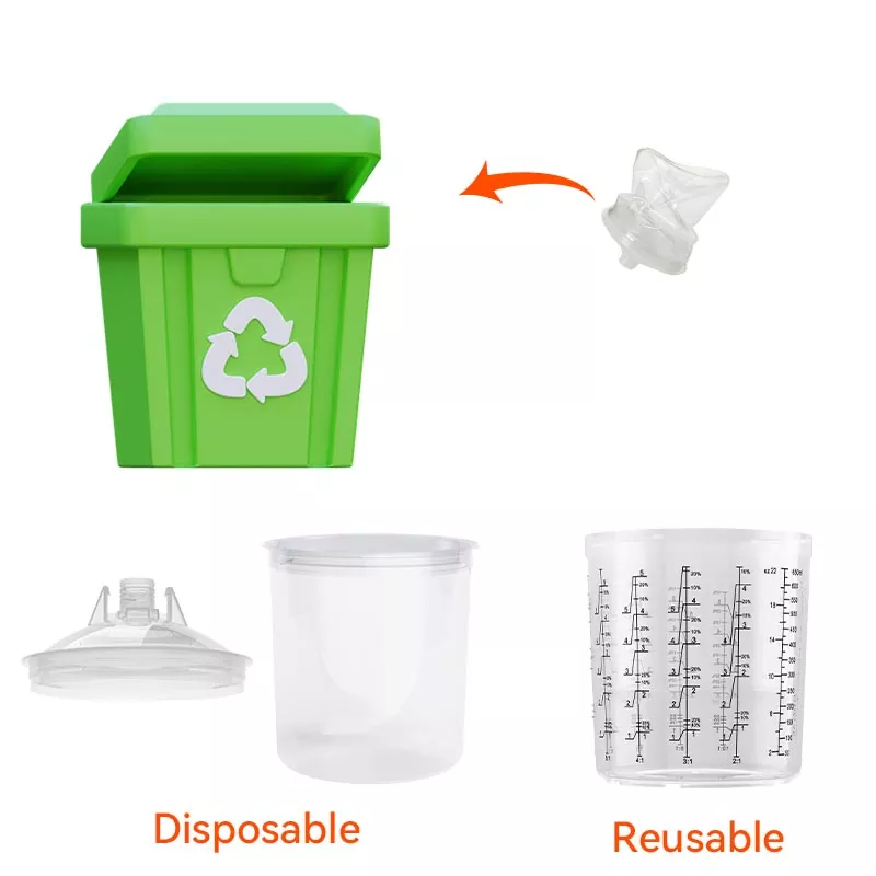 Het 600 ml wegwerpverfbekersysteem 1.0 is de meest veelzijdige standaardbeker, geschikt voor gebieden waar 22 fl oz of minder materiaal wordt gespoten.AYSPAT biedt een verscheidenheid aan PPS-bekersystemen met verschillende ontwerpen waaruit u kunt kiezen, en kan ook worden aangepast aan uw behoeften: de buitenste beker kan worden aangepast met uw merklogo en schaal, en het deksel kan worden aangepast met kleur en filtertype. We streven ernaar efficiëntere en handigere wegwerpspuitbekersystemen te ontwikkelen om schilders te helpen hun schilderwerk professioneel en efficiënt te voltooien.