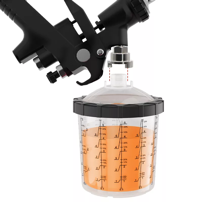 - Verse schilders kunnen het verfbekersysteem snel monteren en demonteren op basis van de geleidegeleider van het deksel.