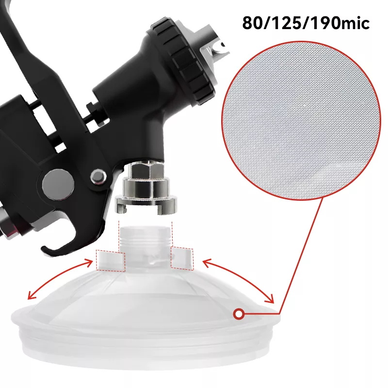 650ML Speedy Paint System 2.0 is een nieuw type wegwerpspuitbekersysteem. Eén doos bevat [1 buitenbeker +1 kraag +50 voeringen +50 deksels +20 stoppers], ter ondersteuning van meerdere kleuren verf in één enkele toepassing. Voor verschillende deeltjesgroottes van de verf zijn er netto filters verkrijgbaar in 80, 125 en 190 micrometer, zodat u het juiste filter kunt kiezen. Het wegwerpspuitverfbekersysteem kan ook functioneren als verfmeng- en opslageenheid, zodat er geen papieren trechters en mengbekers meer nodig zijn, waardoor vier functies in één worden bereikt: filteren, mengen, spuiten en opslaan van de verf. Daarom houden schilderliefhebbers zo van dit product.