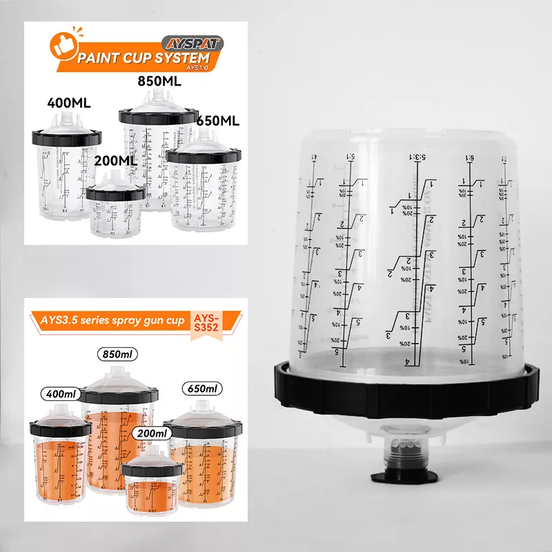 Na voortdurende inspanningen heeft Qingdao Aspaint zijn nieuwe gepatenteerde product gelanceerd: het 650 ml Speedy Paint System 2.0. Het verbrede mondstuk en het nieuwe geleidegeleidingsontwerp op het deksel zorgen voor gemakkelijker en efficiënter schilderen. De buitenbeker en de verpakking ondersteunen het logo op maat, waardoor uw merkinvloed wordt vergroot. Daarnaast bieden we ook formaten van 200 ml, 400 ml en 800 ml om aan verschillende situaties en behoeften van schilders te voldoen. Gebruik elk deel van de verf om nul afval bij schilderwerk te bereiken!
