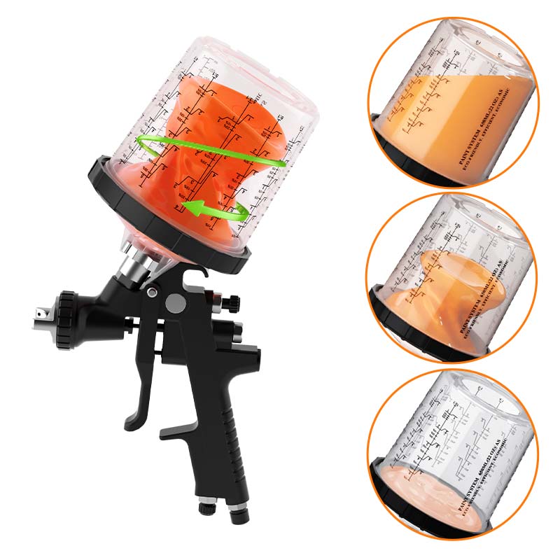 Unieke Vortex Atomization Technology: het innovatieve binnenbekerontwerp maakt de verfdeeltjes gelijkmatiger verdeeld, waardoor de gemeenschappelijke fenomenen zoals gordijn- en oranje schileffect van traditionele spuitpistolen worden vermeden. Dit verbetert de kwaliteit van het spuiten aanzienlijk en verhoogt het verfgebruiksnelheid tot meer dan 85%.