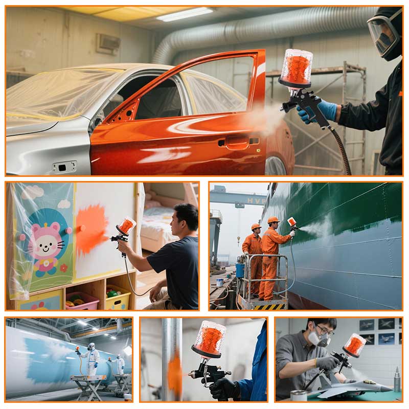 Wegwerp spuitpistoolbekerszijn geschikt voor een verscheidenheid aan toepassingen, waaronder het opnieuw eten van de auto, meubels schilderen, architecturale decoratie en industriële productie, en zijn ideaal voor batch, multi-kleuren spuitactiviteiten. Ze hebben een gestandaardiseerd tuitontwerp en kunnen worden gebruikt met mainstream merkspuitpistolen bij gebruik met adapters.